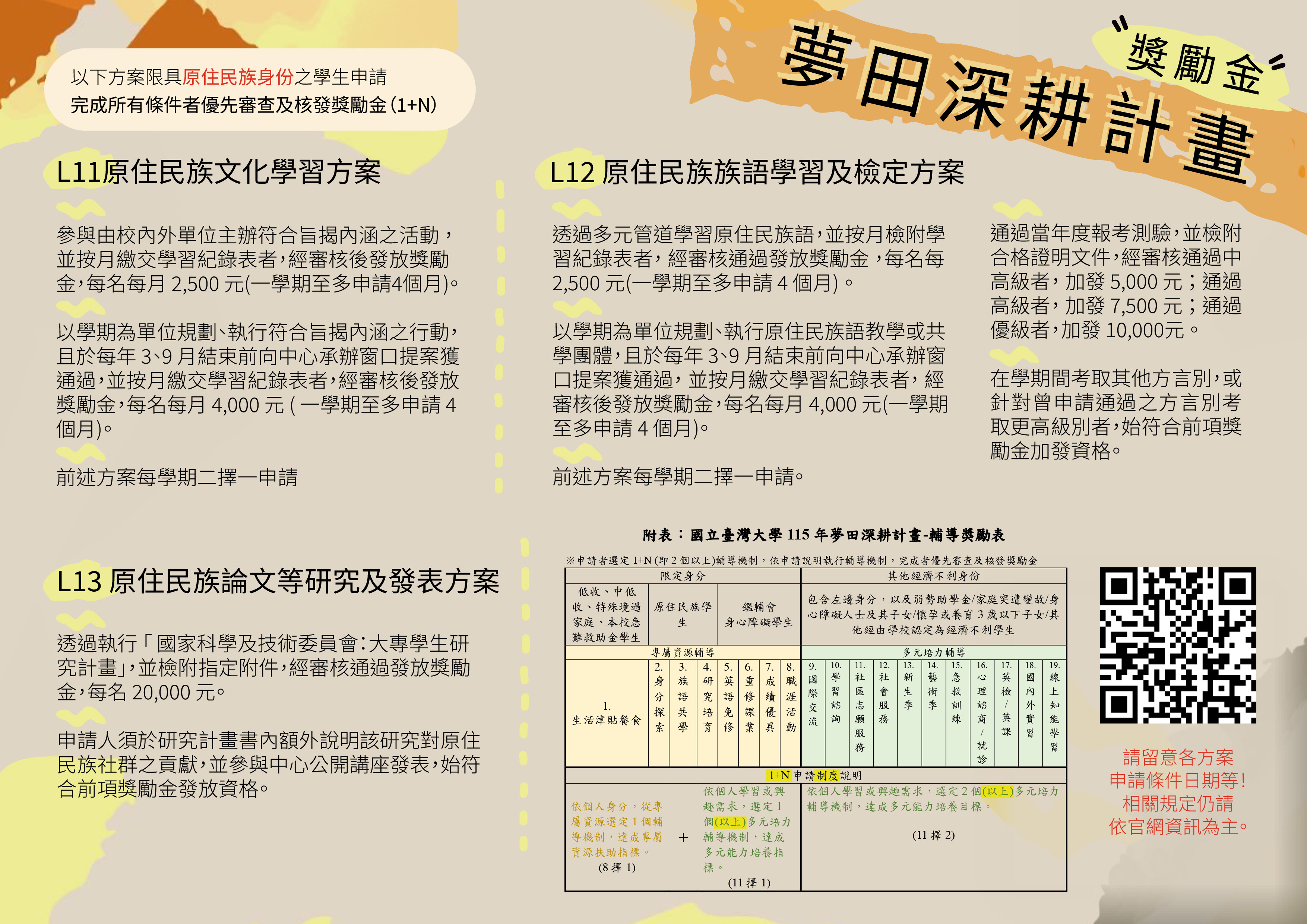 115年度臺大夢田深耕獎助計畫原資相關方案介紹