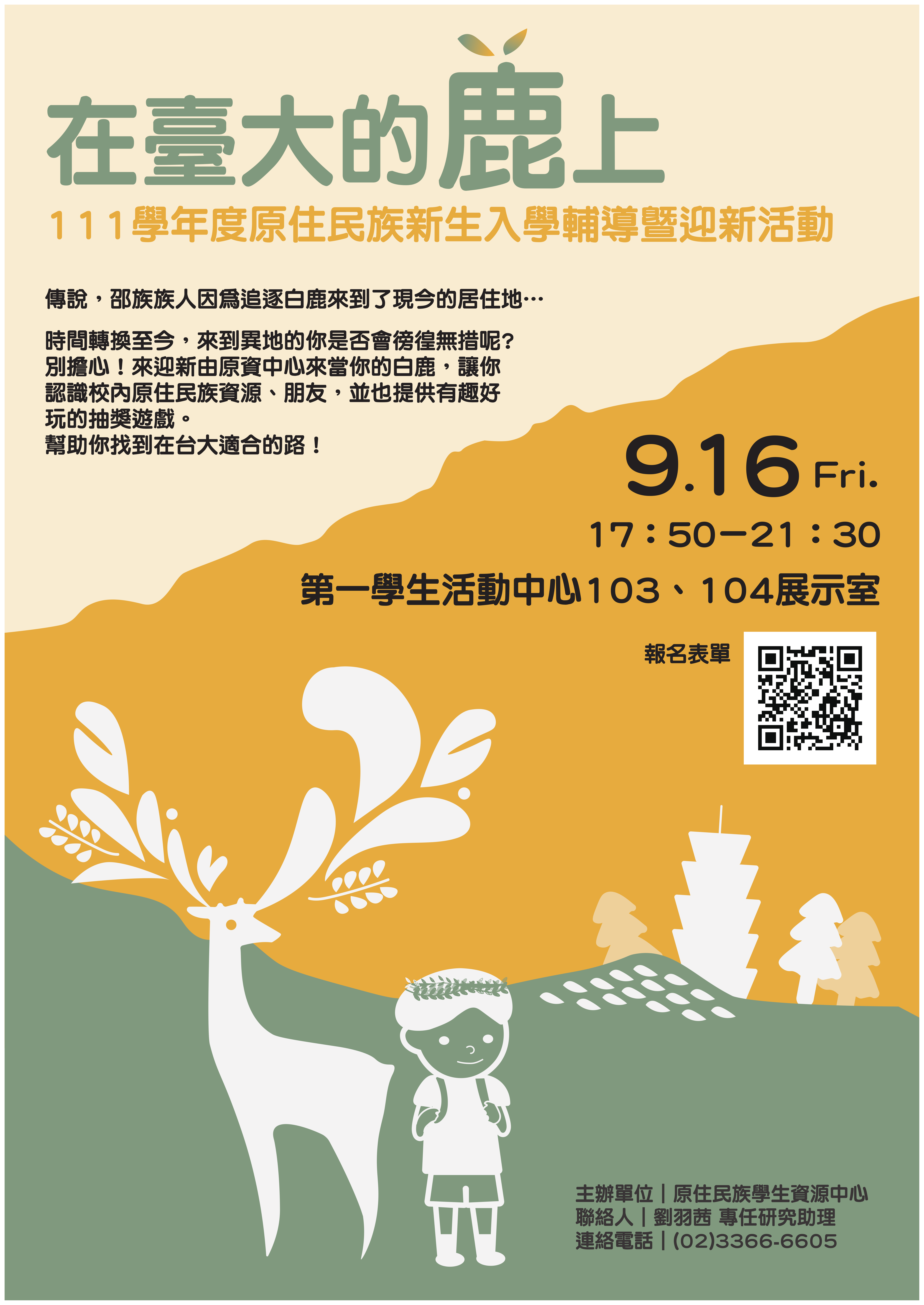 聯絡人:原住民族學生資源中心專任助理 劉羽茜Buhay‧Hayung