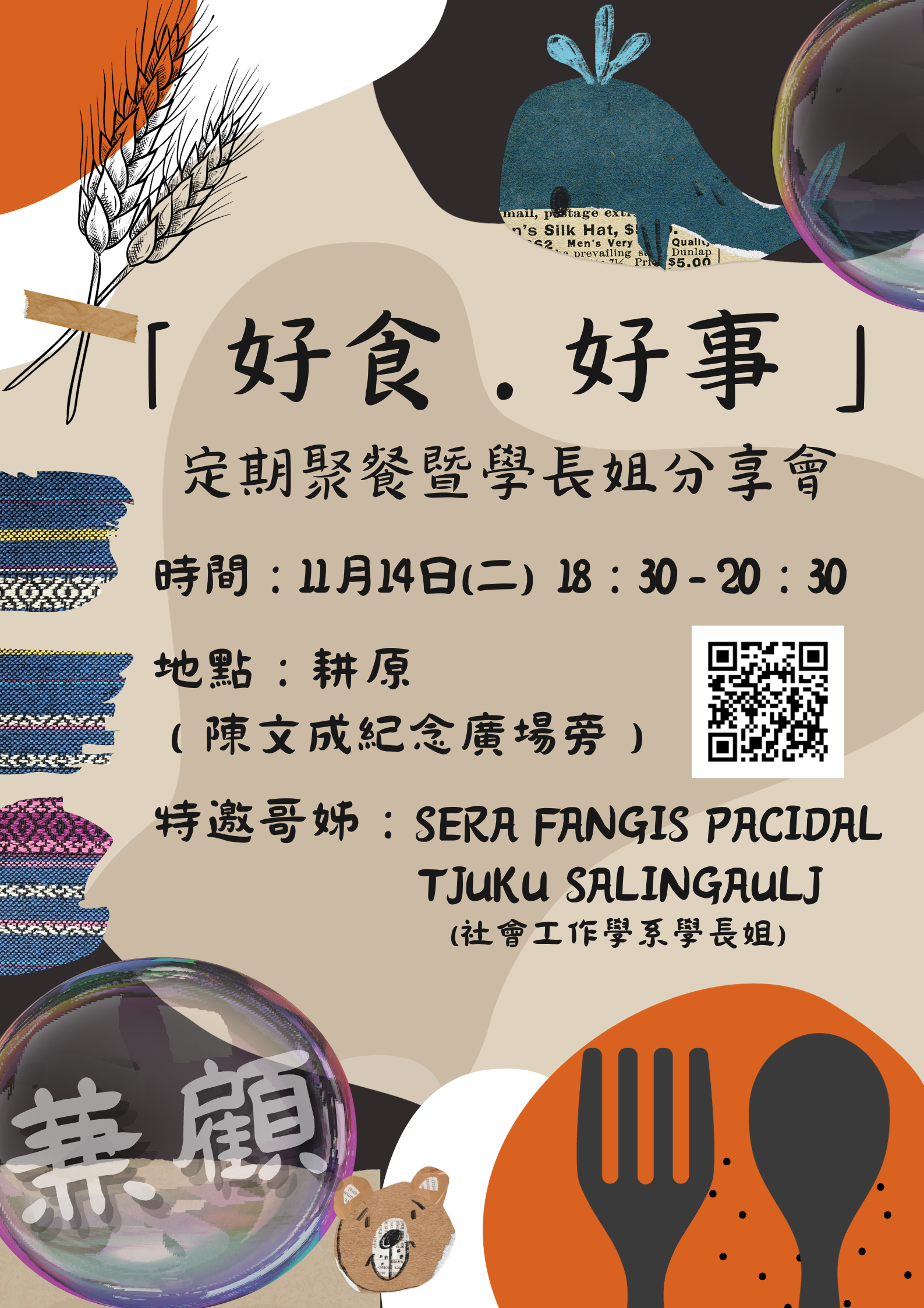 活動名稱:『好食.好事』定期聚餐暨學長姐經驗分享--兼顧主題
